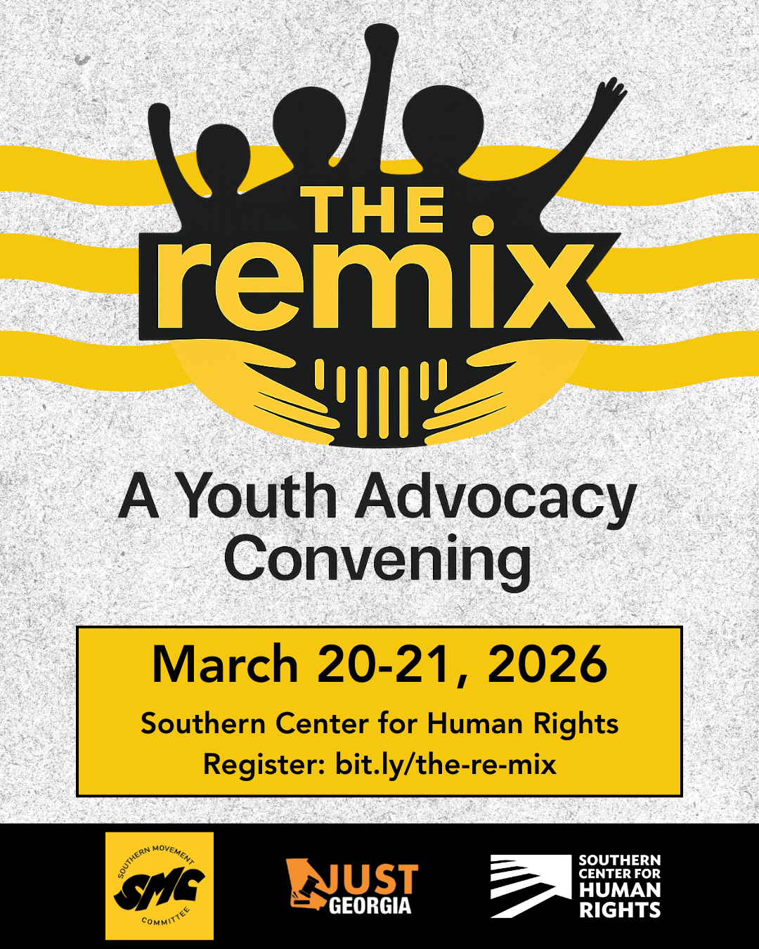 Youth Advocacy Event: The Remix Convening: The Southern Center for Human Rights (SCHR) invites community partners, practitioners, and young leaders to The Remix – Youth Advocacy Convening, a two-day gathering focused on developing community-driven solutions to youth violence and expanding youth co-governance models. The event will take place March 20–21, at the Southern Center for Human Rights in Atlanta and will include a youth and community mixer, facilitated conversations, and a full day of training led by the Southern Movement Committee on youth-centered safety strategies and leadership. Organizers encourage partners to invite and bring 5–10 young people who would benefit from leadership development and collaborative problem-solving opportunities. Learn more and register through SCHR. Register here!